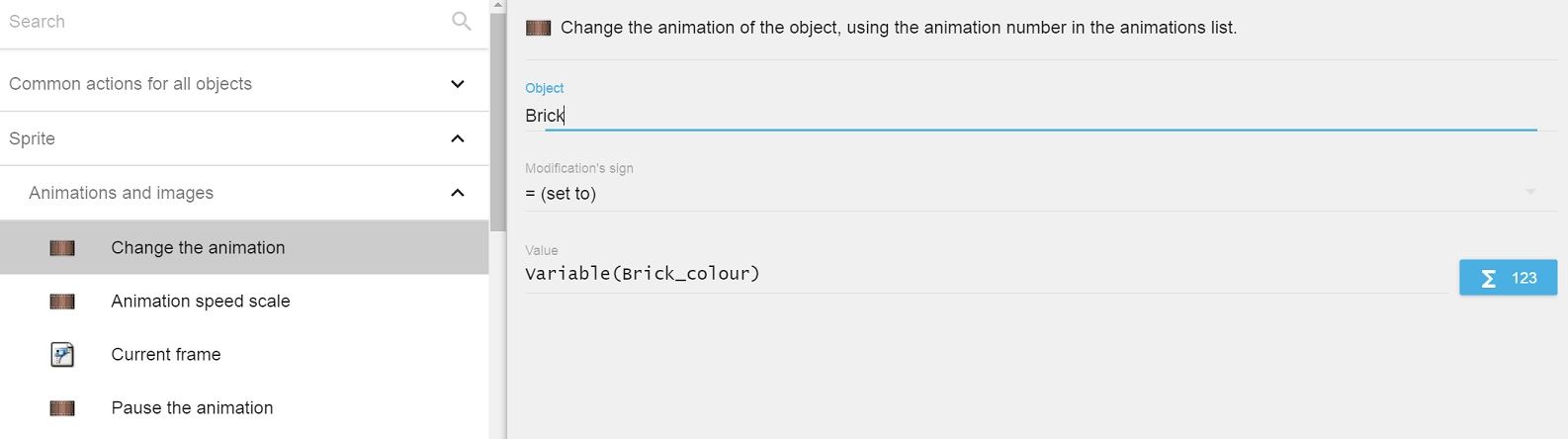 • In the Variable field, type Brick_colour.