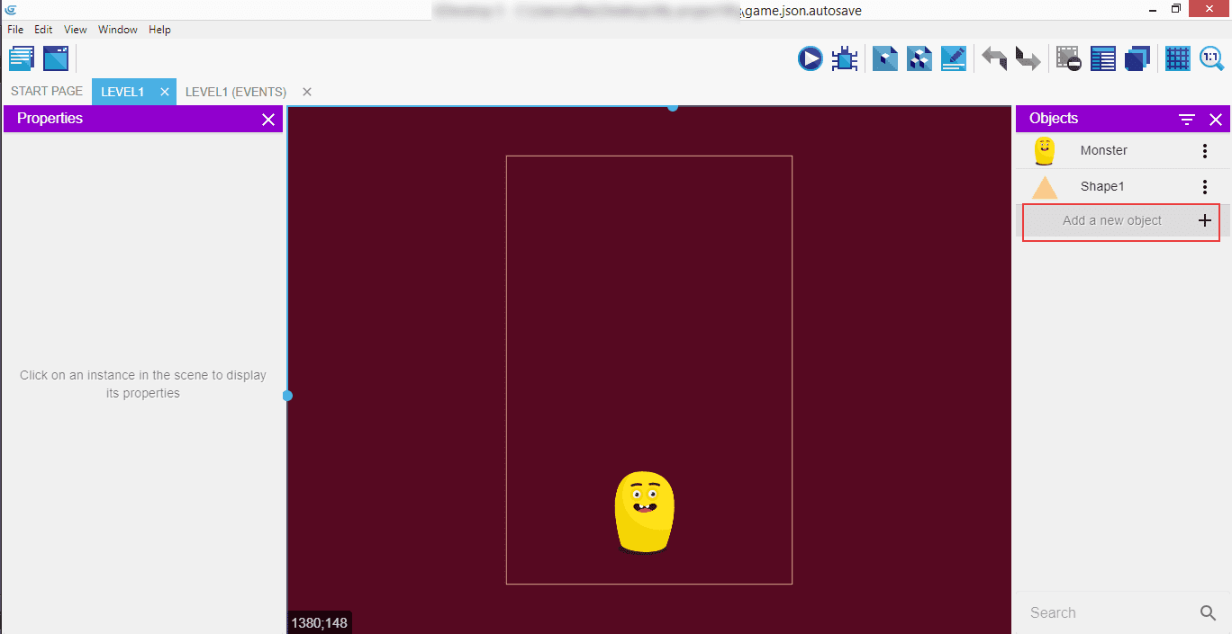 Click on the "Add a new object" in the right panel to open a popup.